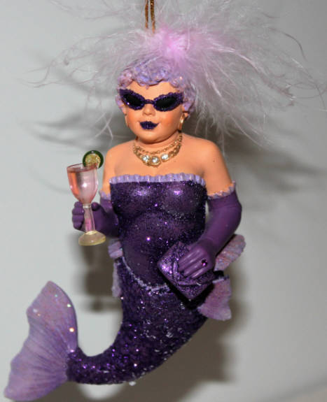 Purple Passion was one of those mermaids that struck one as very cool. Maybe it was the purple color. I think she is definitely a drag queen. One of the cooler mermaids here. Smaller in size to most of these ornaments, she still gets the eye catching stare from me every once in awhile.