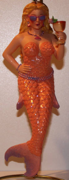 Erika is a great orange colored mermaid. She looks as if she's about to keep on enjoying the party wherever she goes. Sex On The Beach is her drink obviously, so you can make up your mind where she goes with that. She is having a good time. A real party mermaid.
