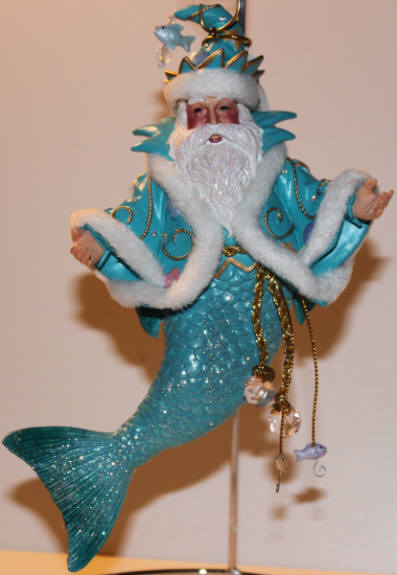 King Neptune 1 is the original merman of hopefully a long list to follow. He has been remade in red, and now December Diamonds is toying with making yet another version. I hope so, since he is essential to the collection. I lucked out finding this last one in brand new condition this past Christmas with it's box. I am now up to date with the mermen!! Yay!!