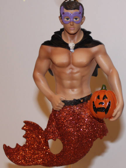 Spooky has a great orange color. I like his cape that ties around his neck and he wears almost the same mask Jack O'Lantern did. Great orange glitter. Essential to the set.